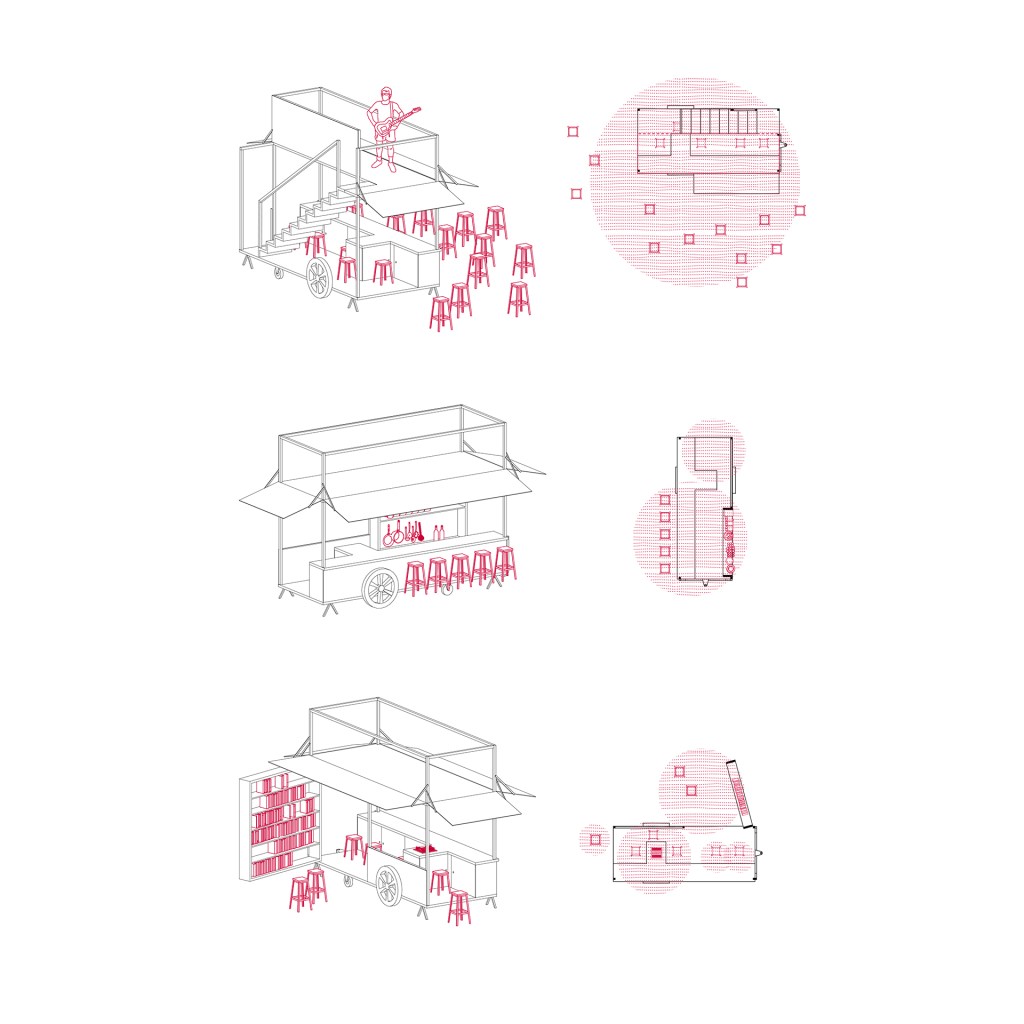 The design that is proposed for Coney Island comes in the form of economic metabolism. It recognizes that Coney Island doesn’t have the economic drive as it once had in the 80’s and has fallen into fragmented blocks of commerce which creates socio-economic and personal security disparities. People of Coney Island are mainly going to other neighbourhoods for work or entertainment, therefore not stimulation/circulating within Coney Island. Whereas there are multitudes of business opportunities, services or resources trade the financial costs of starting from zero to a physical business is too steep. The design of the pavilions provide an affordable and temporary space to conduct business to encourage people to work and provide within Coney Island